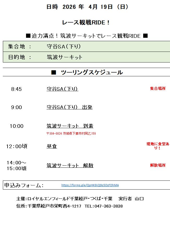 今回のツーリングは、筑波サーキットで行われる「MAX10(海外メーカー車両レース)」を観戦しに行こう!RIDEです^^